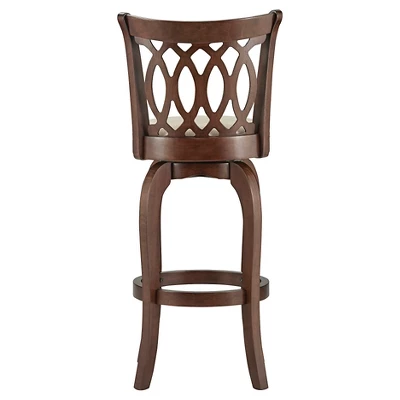 Classic in design, but modern in function, the Parma Swivel Barstool is a tasteful look that fits in with both contemporary or traditional interiors. This stylish piece of home furniture looks great at your bar, countertop or kitchen island and offers a sophisticated design that is as dynamic as it is comfortable. Featuring a swivel mechanism, a foot rest, a durable rubberwood construction, a latticed backrest and a padded seat.