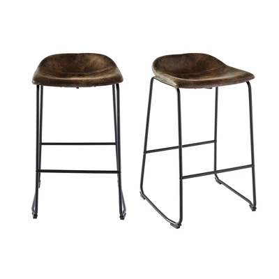 The Picket House Furnishings Galloway Low Back Bar Stool Set is the perfect addition to your home! This dynamic duo mixes industrial with rustic, making it easy to pair with existing items in your home! The faux leather seats provide style, while the foam cushion filling keeps you super comfy for hours. The stylish low back offers slight back support to keep you from falling back. The metal frame is super sleek and clean, ensuring this will be a staple in your home for years to come. Stretchers along the front and back bases offers extra support.