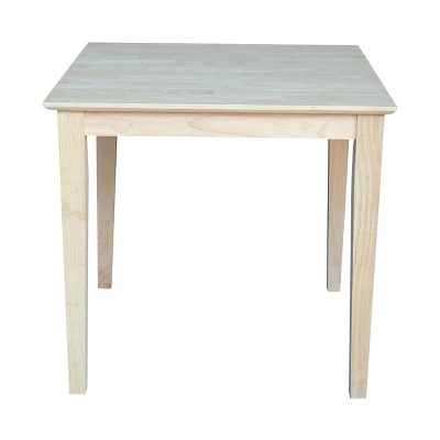 For those who appreciate high quality wood furniture with a traditional and elegant look. International Concepts home furnishings will complement any décor. This Dining Table is made of solid wood ensuring years of use. The table features a butcher block top and four shaker styled legs for maximum support. It is unfinished, allowing you to match any decor. The square table measures 30″ W x 30″ D, and is available in standard dining height, counter height, and bar height options. The standard dining height table is for use with dining chairs and is 30″ H. The counter height table is used with counter height stools and is 36″ H. The bar height table is 42″ H and is used with bar stools. This Solid Wood table ships ready to assemble.
