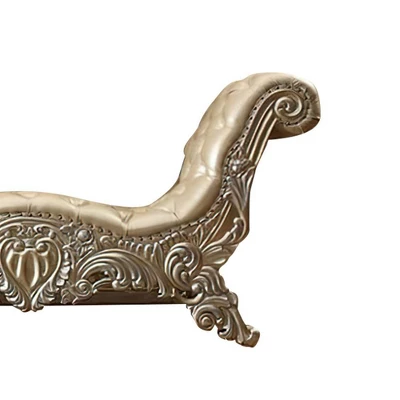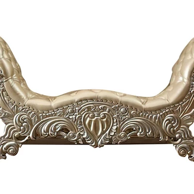 The Vatican Bedroom Collection employs a sense of timeless style in each piece, from button-tufted upholstery, scrolled floral accents to detailed design. Padded headboard and footboard showcase classic arched-silhouettes that are graced with crown, scrolled trims, and ornate engravings. Champagne gold-tone lends a sleek finishing touch to matching casegoods. The Vatican Collection will infuse your bedroom with glitter and endless luxury.