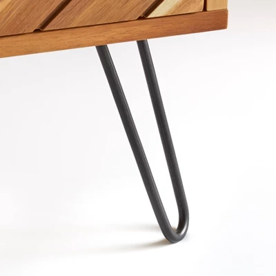 - Constructed of MDF, Acacia veneer, solid Rubberwood drawer fronts and metal legs; 9.2-inch floor clearance