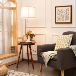 Costway End Table Lamp Bedside Nightstand Lighting With Wireless Charger NaturalCoffee