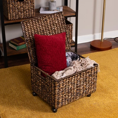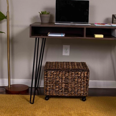 The BirdRock Home Seagrass Rolling File Cabinet is the perfect file organizer for your office or home office. The box adds a stylish and decorative accent, unlike the old fashioned metal filing cabinets commonly found in offices today. Woven by hand by skilled weavers making each cabinet unique and beautiful. The file cabinet can hold both letter or legal sized hanging files. The base of the cabinet features four durable wheels allowing it to roll where ever you need it making it perfect for smaller spaces. It also features an easy to open the lid, allowing you to conceal your files. While it’s ideal for files, the storage bin is also great for storing other household items. Easily store pillows, blankets, books, magazines, or toys, keeping your home organized and neat. The storage bin is constructed of durable and robust abaca seagrass, allowing it to be the accent of your office or home for years to come. Weave Variation may differ from unit to unit due to the handwoven construction of the cabinet. COLOR: Brown Wash. DIMENSIONS: 17.5″ Width x 14.5″ Depth x 13″ Height. WEIGHT: 10 lbs. **Weave Variation may differ from unit to unit due to the handwoven construction of the cabinet