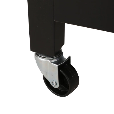 MULTI-FUNCTIONAL: Our kitchen cart offers two drawers, one glass-paneled cabinet space, and two half shelves for storing your items. This cart is also finished with a towel holder on one side and hanging hooks on the other. The bottom of the cart is completed by rolling casters with locks that make it effortless to transport.