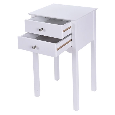 This is our attractive and practical side table, which is a perfect decor for your living room or bedroom. Constructed of high quality, non-toxic MDF material, this table is sturdy and reliable. Two slide-out drawers provide convenient space for placing small items. The beautiful black finish on the contemporary furniture will surely compliment any bedroom decor. Don’t hesitate to add it to your cart!