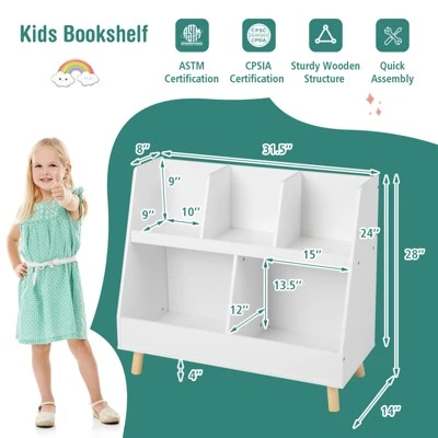 - Ideal Height & Stability: The storage display organizer features a kid-friendly height of 28” & a convenient open design, which is thoughtful for kids to search for favorite books or toys. Besides, it is fitted with anti-tipping kits, so the bookshelf will be firmly anchored to the wall for better balance.