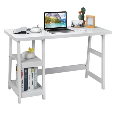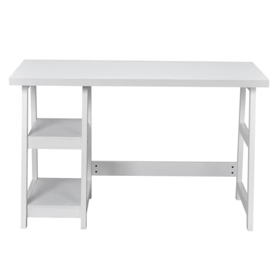 Constructed of high-quality materials and a sturdy frame, this desk ensures durability and stability. The spacious tabletop and 2-tier open shelves provide perfect storage and display functions, making everything within reach. And it could be used as a computer desk, writing table, workstation, etc. It’s easy to assemble with all hardware and instructions delivered. The simple and vintage look allows it to complement various decoration styles and is suitable for a variety of occasions. No matter where it is placed, this table will be an eye-catcher!