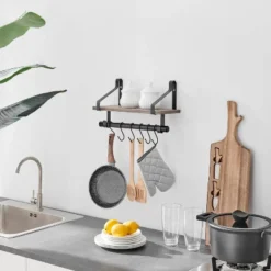 6 Hook Amelia Wall Shelf With Hanging Rod Black/Rustic – Danya B.