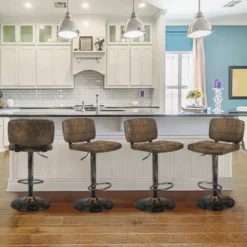 Costway Set Of 4 Adjustable Bar Stools Swivel Bar Chairs W/Backrest Retro Brown