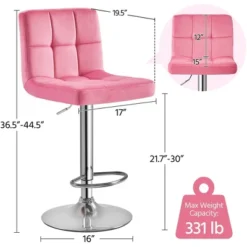 Yaheetech 2pcs Adjustable Modern Velvet Swivel Bar Stool With Backrest And Large Pedestal Base