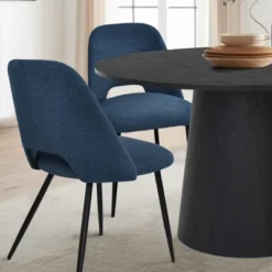 Mid-Century Wood 5-Piece Dining Table Set With 4 Upholstered Dining Chairs-ModernLuxe