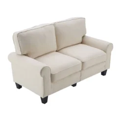 Costway Loveseat Sofa Fabric Settee Bench Bed Chair Wooden Leg Living Room