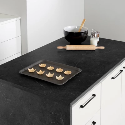 Brighten up your kitchen decor with this trendy, sophisticated Contemporary counter. Its slim metal handles and sturdy surface will add a clean, distinguished touch to your room. Another plus: the surface and sides of this piece are made of melamine, so they’re water and scratch resistant.