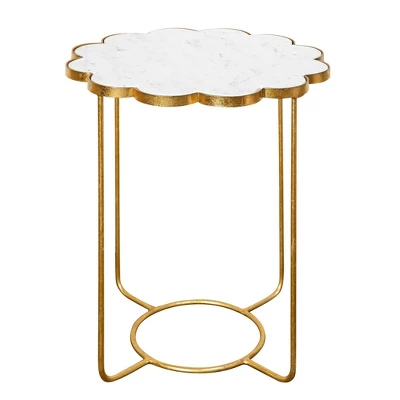 A white marble top and a gold finish complement each other in contemporary fashion in the Galaxia accent side table. The table top has a flower shape while the legs at the base come together to feature a unique circular design. This charming side table is sure to fit in beautifully with modern furnishings in the living room. Due to lighting and monitor differences, actual colors and finishes may vary slightly from what appears online.