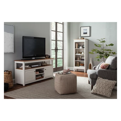 Savannah collection offers modern cottage styling; with its wood top and white painted legs it offers fresh style to your living space. Savannah includes end tables, console tables and media/storage pieces. You can design your coastal, cottage, or farmhouse living room in your home. This media cabinet is the perfect piece to help organize and stowaway all your entertainment components.