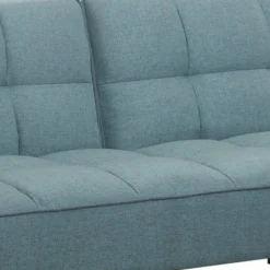 Tufted Stitching Fabric Sofa Bed With Splayed Legs Blue – Benzara