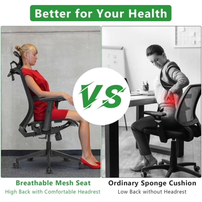 - Various Adjustable Features: The headrest features 2.5” height adjustable and 60° Angle rotatable design to help you get great neck support. Meanwhile, you can effortlessly raise or lower both of the armrest and seat to your desired height. The mesh desk chair seriously conforming to ergonomic principle is aimed at providing comfortable experience for you.