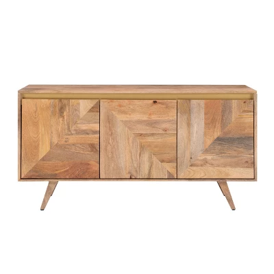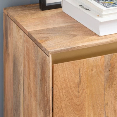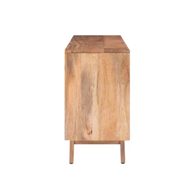 Striking knots and grain patterns in the mango wood of this console come to life in geometric cuts that pair wonderfully in both traditional and contemporary decor settings. 4 shelves support up to 45 lbs each, offering generous storage for dinnerware, electronics, or any other items you’d like to keep tucked away but readily accessible. Measuring at 58” L X 16” D X 30” H, this piece is perfect as a tv stand or extra storage in your dining room, entryway or bedroom.