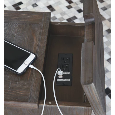 Love furniture that’s distressed to impress? Inspired by heavy and hearty lodge-style furnishings from days gone by, this chairside end table brings the past brilliantly into the present. Distinctive details include robust mouldings and a distressed aged pine color finish with light wire-brushed texture that’s pure artistry. Addition of cleverly placed AC power and UBS plug-ins makes this yesteryear-inspired end table made for the here and now. Stylish and affordable furniture and accessories are more than a dream. For more than 70 years, Ashley Furniture has furnished millions of homes, one beautiful piece at a time. We design and build furniture, then test it for lasting quality and functionality—so you’ll love the look and the price. Signature Design by Ashley is a registered trademark of Ashley Furniture Industries, Inc.